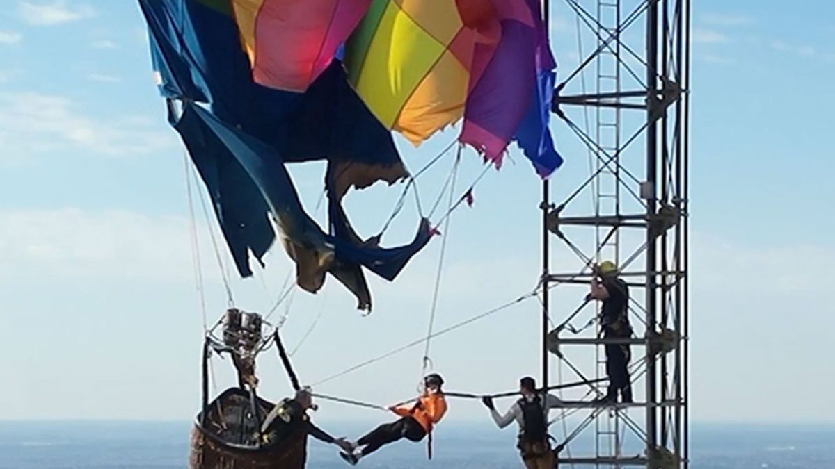 এটা একটা পাখি! এটা একটা প্লেন! এটি একটি যোগাযোগ টাওয়ারে আটকে থাকা একটি গরম বাতাসের বেলুন! লংভিউ, টেক্সাসের দমকলকর্মীরা শনিবার দু’জন হট এয়ার বেলুনিস্টকে উদ্ধার করেছে যখন তারা 900-ফুট কাঠামোতে বিধ্বস্ত হওয়ার পরে এবং ভয়ঙ্কর মিশনটি ভিডিওতে ধারণ করা হয়েছিল।