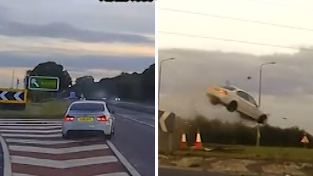 একটি বন্য ভিডিও দেখায় যে একটি গাড়ি বাতাসে উড়ছে এবং শেষ থেকে শেষ পর্যন্ত বিধ্বস্ত হচ্ছে